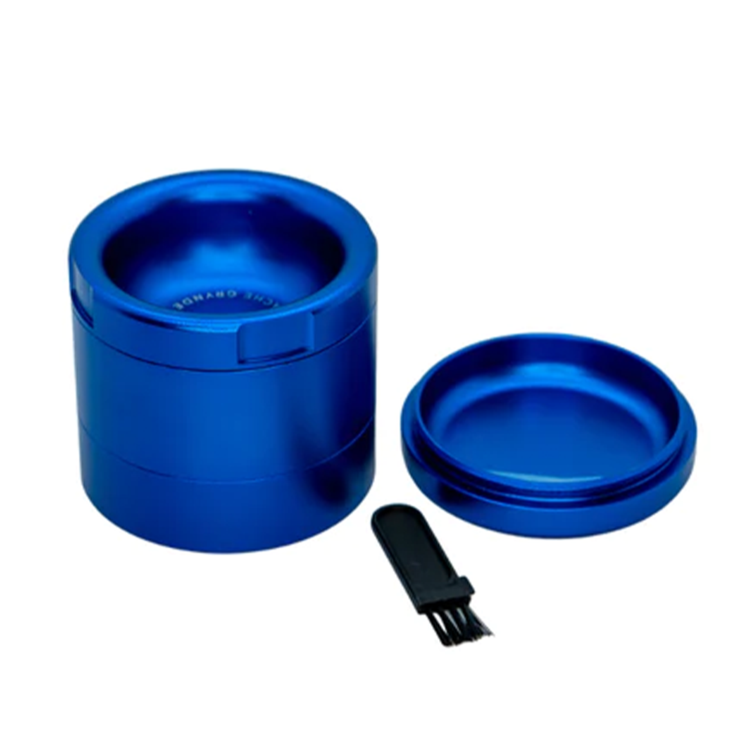 This 4 chamber Grynder features micro rounded teeth that make grinding your flower effortless. No grinding, milling, or shredding; The Grynder finesses your flower into perfection. The micro teeth, added to the large flower chamber and Neodymium Magnets allows you to place "full sized herbs" in the Grynder delivering softer fluffier herbs. The silky smooth threading offers ease of assembly/disassembly. The top the Grynder serves as an ashtray.