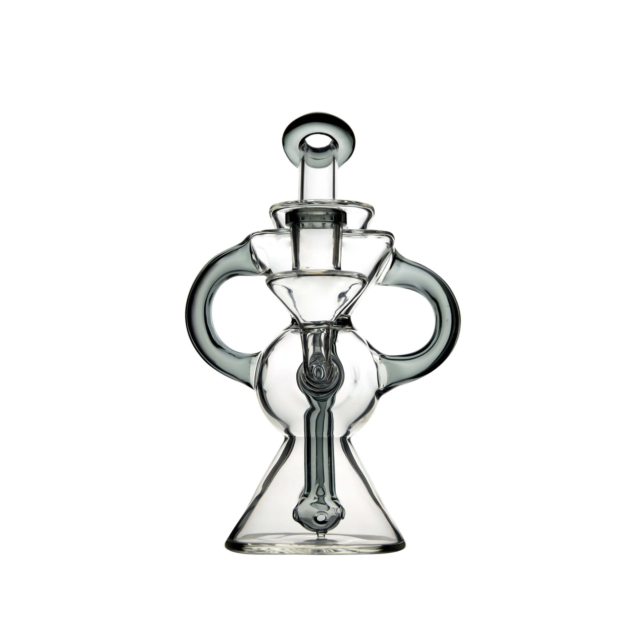 This Inverted Conical Recycler Dab Rig by CALIBEAR redefines smooth airflow and artistic geometry. Its dual-cone design creates a captivating symmetry, while the internal recycler loop ensures constant water circulation for ultra-clean vapor and cooler hits. Crafted from premium borosilicate glass, it combines precision and durability with an elegant silhouette. The ergonomic handle and angled mouthpiece make every session effortless and enjoyable. Perfect for those who appreciate innovation and performance in every pull.